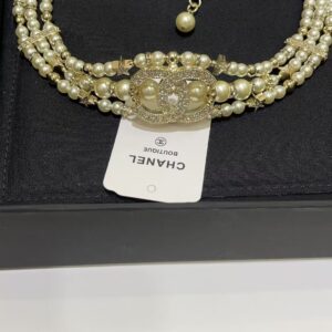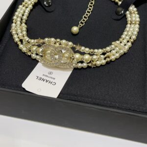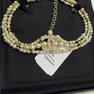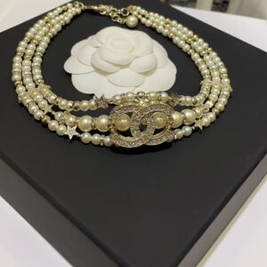 23A new gold full diamond double C small star three-layer pearl necklace choker