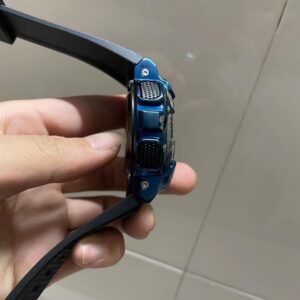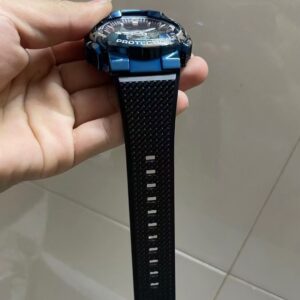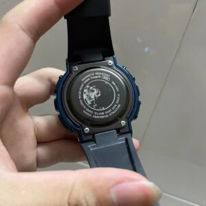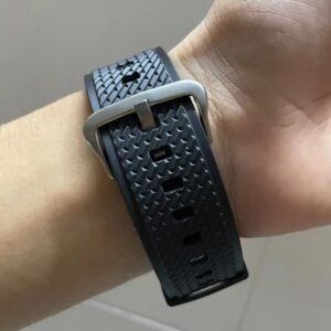 A stainless steel bezel and textured black resin band contributes to this watch’s premium look and tough resilience