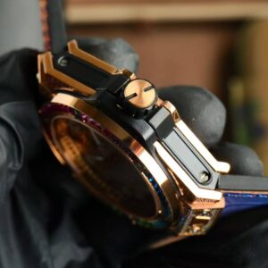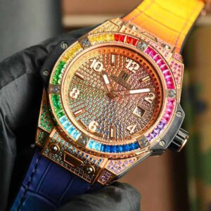 The Big Bang stainless steel rainbow diamond watch is good at breaking traditional boundaries and harmoniously integrating different materials. The watch combines the essence of timepieces and jewelry to illuminate the sense of freedom of fashionable shapes. The white pavé watch inherits the distinctive personality of Hublot’s iconic Big Bang watch, exuding a striking style that dares to break the rules. The watch features a fixed bezel inlaid with sparkling diamonds, playing the rhythm of time on your wrist. Pure and authentic – express your true self without fear or fear!
